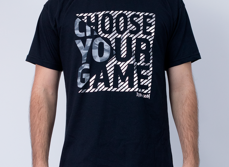 O Drop "Choose Your Game" traz um estilo moderno com a cor Preto, e estampa com tratamento especial em Prata Refletivo.